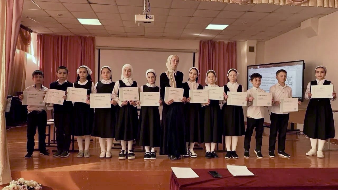 Результаты и достижения муниципального бюджетного общеобразовательного учреждения «Гимназия №1 им. А. Кадырова» города Грозного по итогам 3-х лет. 2022-2023 учебный год Почетная грамота Правительства ЧР: Хасанова М.Р. Почётная Грамота Министерства образования и науки ЧР –Гехаева Р.М., Цугаева Х.У. Благодарственное письмо Министерства образования и науки ЧР- Бараева Е.С-Х., Почётная Грамота Мэрии г. Грозного- Бараева Е.С. -Х., Кадырова Ф.М., Макаева Я.А. Почетная Грамота Департамента образования Мэрии г.Грозного- Оздиева Т.Х. I Городская олимпиада по функциональной грамотности для педагогов и обучающихся - 1 место Благодарственное письмо ДО: Садулаева М.А., Цугаева Х.У., Домбаева А.У., Джанхотова Р.И., Насуева Х.М., Арсакиева З.С., Зузуева А.В., Авдуева А.А., Резванова Л.А., Хатуева Р.А., Дугарова Э.М., Оздиева Т.Х. Победитель городского конкурса «Лучший урок-лабораторная работа» по биологии-Садулаева М.А. Грамота общественной палаты ЧР-Дугарова Э.М. Региональный этап Всероссийского турнира «Лига знаний: школы, колледжи» - 1 место Городской турнир по мини-футболу – 2 место II межрегиональная игра «Брейн-ринг» по предметам естественнонаучного цикла- 1 место Рейтинговый консорциум RAEX «Рейтинг лучших школ ЧР по количеству выпускников, поступивших в ведущие вузы России» - 1место по итогам 2022-2023 учебного года 2023-2024 учебный год Почётная Грамота Министерства образования и науки ЧР – Бараева Е.С-Х., Домбаева А.У., Хунарикова Л.М., Арсакиева З.С., Зузуева А.В., Цугаева Х.У. Победитель регионального этапа Всероссийского конкурса «Воспитать человека»- Межидова Л.С. Медаль «За безупречный труд в основном общем образовании» –Гехаева Р.М. Почетная грамота Правительства ЧР: Хунарикова Л.М. Благодарственное письмо Министерства образования и науки ЧР- Бараева Е.С-Х., Почетная Грамота Департамента образования Мэрии г.Грозного: Хунарикова Л.М., Арсакиева З.С., Садулаева М.А. Благодарственное письмо ДО: Садулаева М.А., Цугаева Х.У., Домбаева А.У., Насуева Х.М., Арсакиева З.С., Зузуева А.В., Авдуева А.А., Резванова Л.А., Хатуева Р.А., Хунарикова Л.М., Алхастова Х.Б. Диплом победителя проекта «Мой дом, моя улица на туристической карте РФ»- Межидова Л.С. Диплом победителя проекта «Мой дом, моя улица на туристической карте РФ»- Команда гимназии Рейтинговый консорциум RAEX «Рейтинг лучших школ ЧР по количеству выпускников, поступивших в ведущие вузы России» - 1место по итогам 2023-2024 учебного года Рейтинговый консорциум RAEX «Рейтинг лучших школ ЧР по конкурентоспособности выпускников» - 2место по итогам 2023-2024 учебного года Победители в конкурсном отборе на предоставление в 2024 году из федерального бюджета гранта в форме субсидии юридическим лицам в рамках реализации мероприятия «Оказание услуг психолого- педагогической, методической и консультативной помощи родителям в рамках федерального проекта «Современная школа» национального проекта «Образование». 2024-2025 учебный год Знак отличия Министерства Просвещения РФ «Отличник просвещения»- Гехаева Р.М., Эдилова З.Х. Медаль За безупречный труд в начальном общем образовании –Мужаидова А.С-А, Почётная Грамота Министерства образования и науки ЧР –Бараева Е.С-Х., Ажиева Р.Х., Зузуева А.В., Цугаева Х.У., Садулаева М.А. Благодарственное письмо Министерства образования и науки ЧР – Бараева Е.С-Х., Межидова Л.С., Пайтаева Л.Т. Благодарственное письмо Парламент