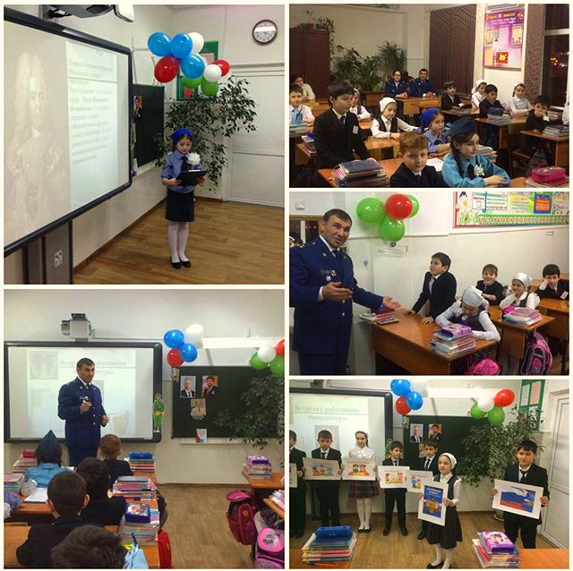 18.01.2017Сегодня, в гостях у учащихся 3 В класса был полковник,заместитель прокурора ЧР Джанхотов Заурбек Магометович. Дети рассказали стихи о правах ребенка,учащиеся подготовили презентции о Прокуратуре РФ и ЧР . Заурбек Магометович ответил на многочисленные вопросы учащихся.