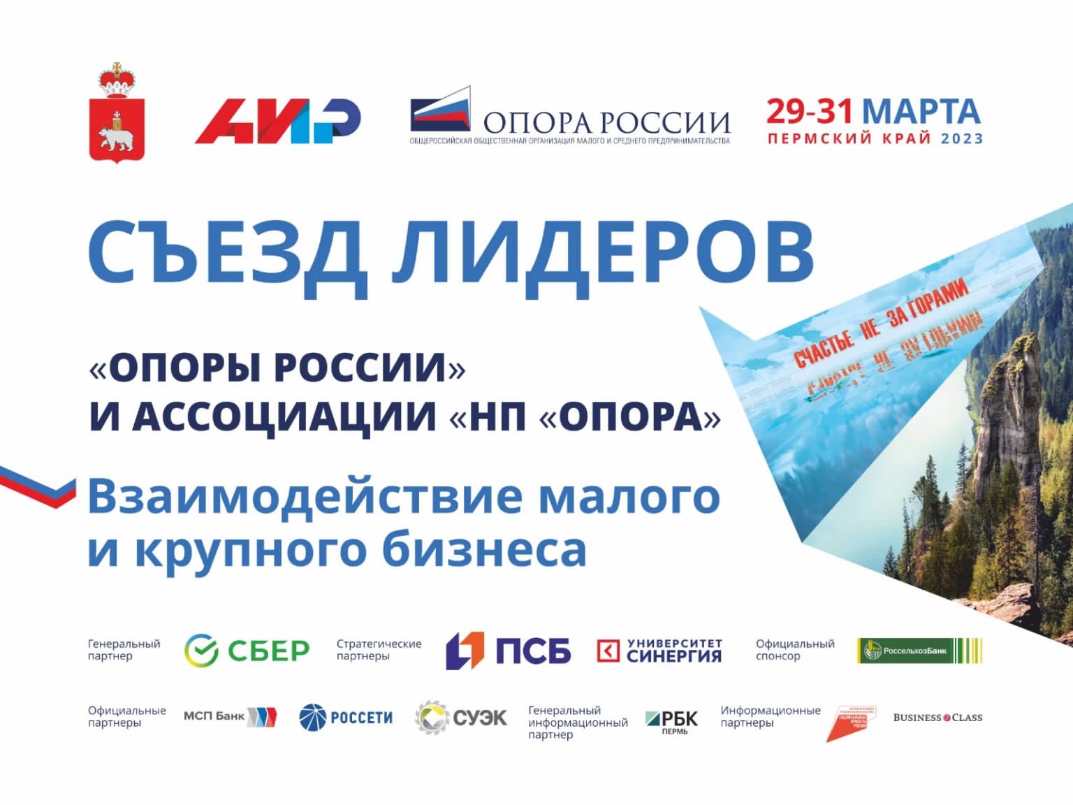 27.03.2023В Перми состоится Съезд лидеровС 29 по 31 марта в Перми состоится Съезд лидеров «ОПОРЫ РОССИИ» и Ассоциации «НП ОПОРА», на котором соберутся представители федеральных и региональных органов власти, актив бизнес-объединения, члены региональных отделений Организации, а также отраслевых ассоциаций и союзов. В рамках деловой программы будет затронут широкий круг тем, актуальных для представителей сектора МСП: взаимодействие крупного и малого бизнеса, продвижение товаров на маркетплейсах, защита прав предпринимателей и многое другое.29 марта: что ждет участников первого дня Съезда лидеровНа площадках Съезда лидеров пройдут несколько разноформатных мероприятий — от пленарного заседания, в котором примет участие Губернатор Пермского края Дмитрий Махонин, до параллельных дискуссий, которые будут посвящены важным в новых реалиях вопросам.Темой пленарного заседания, которое промодерирует Президент «ОПОРЫ РОССИИ» Александр Калинин, станет «Взаимодействие крупного и малого бизнеса в промышленности. Эксперты расскажут о лучших практиках сотрудничества крупного бизнеса с субъектами МСП; федеральных и региональных инструментах содействия их кооперации; мерах для построения эффективного взаимодействия в том числе в рамках Нацпроекта МСП и др. В качестве спикеров выступят: замминистра экономического развития РФ Татьяна Илюшникова, замруководителя фракции «Единая Россия» в Госдуме РФ Сергей Морозов, генеральный директор АО «Корпорация МСП» Александр Исаевич, Первый вице-президент «ОПОРЫ РОССИИ» Марина Блудян, генеральный директор Платформы для работы с обращениями предпринимателей «ЗаБизнес.РФ» Элина Сидоренко и др.При участии Губернатора также пройдет финал региональной премии «Бизнес-Успех» в Пермском крае и награждение ее участников.В рамках параллельных сессий эксперты поднимут самые разные темы, которые волнуют представителей сектора МСП. Так, на площадке дискуссии «Маркеплейсы. Преимущества и проблемы. Проект «ОПОРА-СТАРТ» руководитель проекта «ОПОРА-СТАРТ» Олеся Соловьева, директор по развитию сервисов Wildberries Кристина Спирева, GR-директор «Яндекс Маркета» Дмитрий Русаков и другие эксперты поделятся преимуществами взаимодействия предпринимателей с маркетплейсами, на что обращать внимание при работе с ними, как небольшим предпринимателям продавать свою продукцию в сетях, а также уникальными условиями для членов бизнес-объединения.Сессия «Промышленный МСП: вызовы и возможности» будет посвящена дефициту кадров в промышленности, потенциалу и барьерам для инновационных разработок производителей МСП, развитию офсетных контрактов, примерам использования IT-сервисов промпредприятиями для экономии ресурсов и др. Мероприятие пройдет под модераторством Вице-президента Ассоциации «НП ОПОРА», Председателя Комитета «ОПОРЫ РОССИИ» по промышленности Максима Третьякова. В качестве спикеров выступят: руководители профильных Комитетов Новосибирской и Челябинской «ОПОРЫ РОССИИ» Евгения Чавкина и Павел Золотов, директор ООО «Е-Металл» Денис Харламов, директор ООО «Уральский завод автоматики» Сергей Кашигин и др.О транспортной реформе в Перми, опыте Пермского края в борьбе с нелегальными перевозчиками, развитии сети заправочных станций, работающих на природном газе, реализации нацпроекта «Безопасные кач