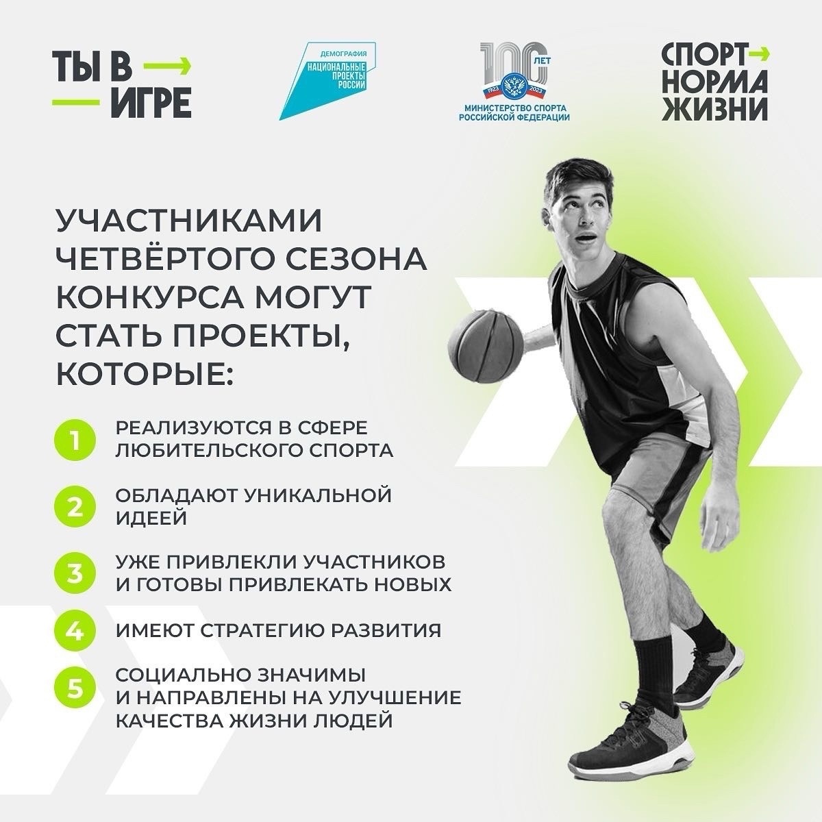 31.01.2024На ВДНХ презентовали фильм-путеводитель по спортивному туризму в России21 января на Международной выставке-форуме “Россия” был презентован фильм-путеводитель по спортивному туризму в России, в который вошли проекты-участники новой номинации “Спортивный туризм” Всероссийского конкурса спортивных проектов “Ты в игре”.“За три предыдущих сезона в конкурсе приняло участие более 11 тысяч проектов со всей России. Мы обратили внимание, что у многих людей, которые узнают о конкурсе, большой интерес вызывают проекты, связанные именно со спортивным туризмом», - отметила во время презентации вице-президент федерации триатлона России, официальный амбассадор IRONMAN RUSSIA, член Экспертного совета Всероссийского конкурса спортивных проектов «Ты в игре» Виктория Шубина.В номинации “Спортивный туризм” могут принять участие действующие проекты, которые развивают спортивный туризм и стимулируют создание инфраструктуры для него: трейл в горах Башкирии, забег в яблоневом саду Калининградской области или по льду озера Байкал, гонки на собачьих упряжках на Камчатке, рафтинг в Иркутской области. За первый месяц заявочной кампании на конкурс были поданы проекты самого разного масштаба и географии. Все они становятся частью энциклопедии спортивного туризма, которая представлена на сайте конкурса.“В фильм вошла лишь малая часть проектов, которые были поданы на конкурс в четвертом сезоне. Уже сейчас для нас очевидно, что номинация станет не только одной из самых популярных, но и позволит каждому жителю России узнать больше о ландшафте спортивного туризма в нашей стране”, - добавила Виктория Шубина.Завершилась презентация розыгрышем трех призов, предоставленных участниками конкурса “Ты в игре”. Полуфиналист третьего сезона в номинации “Масштаб” и участник четвертого сезона в номинации “Спортивный туризм” проект “Паруса нашей Родины” разыграл сертификат на участие в ознакомительном мастер-классе по управлению парусным катамараном. Спортивный горный фестиваль "Малидак" - победитель второго сезона "Ты в игре" в номинации "Масштаб" - бесплатное участие в фестивале, который состоится в августе в Республике Башкортостан. А новичок конкурса уникальный “Сырный трейл” – слоты на участие в июльском забеге._____________________Фильм вы можете скачать по ссылке: https://disk.yandex.ru/d/SA9jb2tgPociBQЗапросить дополнительные материалы или комментарии спикеров вы можете в пресс-службе конкурса “Ты в игре”._____________________Прием заявок для участия в четвертом сезоне Всероссийского конкурса спортивных проектов «Ты в игре» продлится до 11 февраля 2024 года.Победители в каждой из основных номинаций конкурса получат 300 000 рублей на развитие своих проектов. А лучший проект сезона – гран-при размером 1 000 000 рублей.Поддержка спортивных проектов, направленных на увеличение занимающихся спортом жителей страны - одна из приоритетных задач федерального проекта «Спорт-норма жизни» национального проекта «Демография», который реализуется по решению Президента России Владимира Путина.Подробная информация о четвертом сезоне «Ты в игре» публикуется на официальном сайте конкурса тывигре.рф