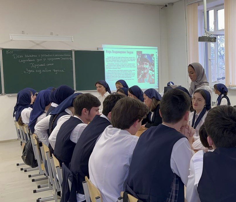 17.02.2024При поддержке Президента России по национальному проекту «Образование», а также в рамках реализации федерального проекта «Патриотическое воспитание» 33 учащихся 10 «В» класса МБОУ «Гимназия №1 им. А. Кадырова» г. Грозного приняли участие в региональном круглом столе, организованном советником директора по воспитанию МБОУ «Гимназия №1 им. А. Кадырова» г. Грозного Межидовой Л.С., совместно с Региональным ресурсным центром «РосДетЦентр» «Навигаторы Детства» в лице муниципального координатора Аздаевой Марьям. Круглый стол прошел под названием «Здесь под небом чужим» и отражал объективную оценку позиции каждого участника по отношению к Афганской войне.