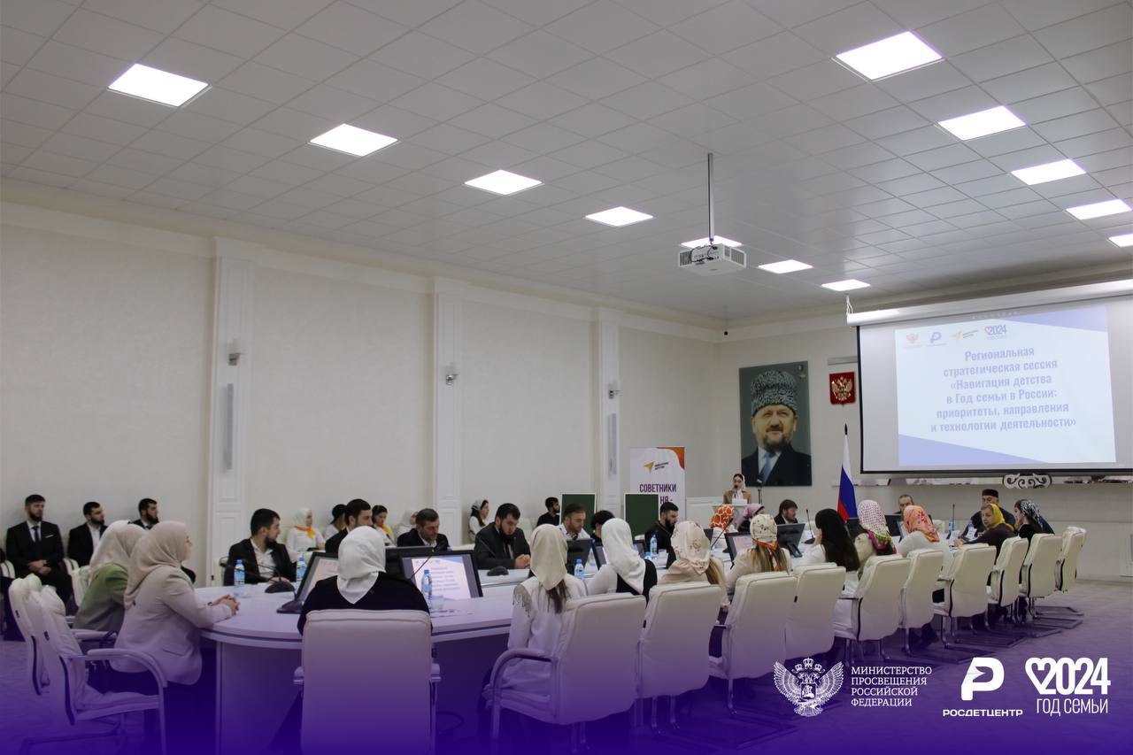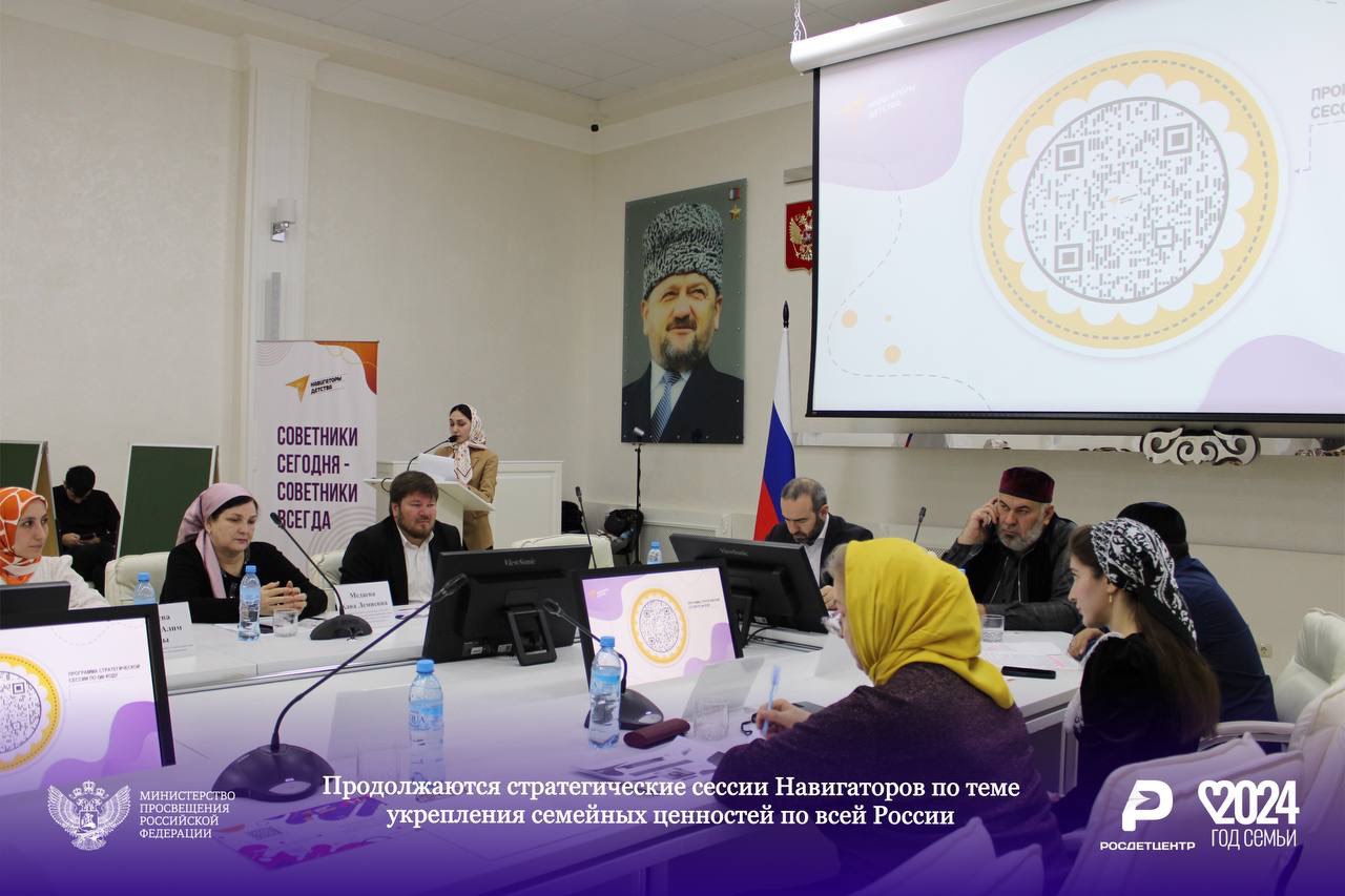 Стратегическая сессия «Навигация детства в Год семьи в России: приоритеты, направления и технологии деятельности» проходила в стенах Чеченского государственного педагогического университета с целью обсуждения вопросов укрепления института семьи в ЧР, роль духовно-нравственного и патриотического воспитания детей и молодежи, а также в целях установления тесных связей между проектом «Навигаторы детства» и родительской общественностью.
