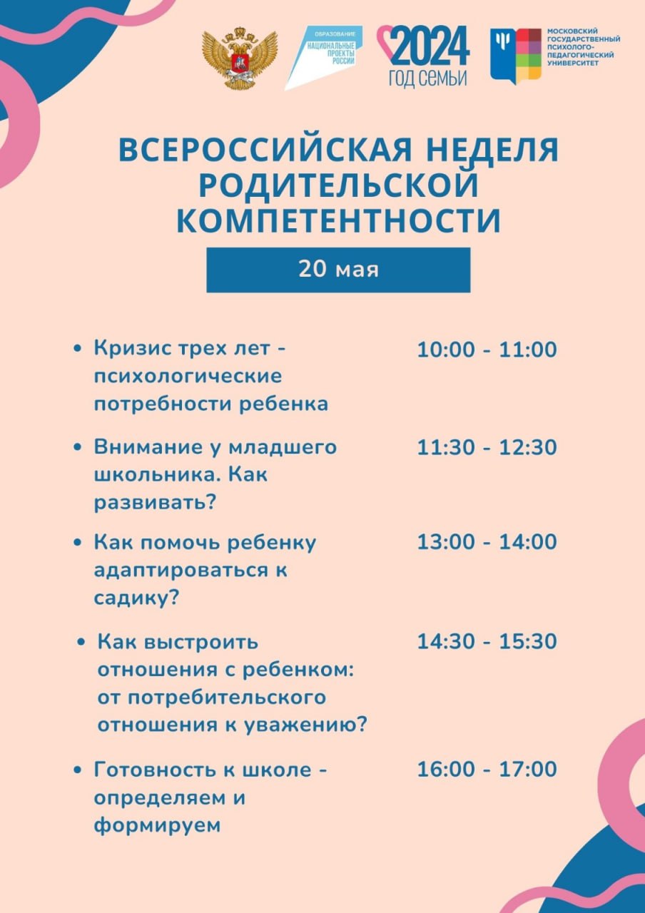 С 20 по 25 мая 2024 года состоится Всероссийская неделя родительской компетентности