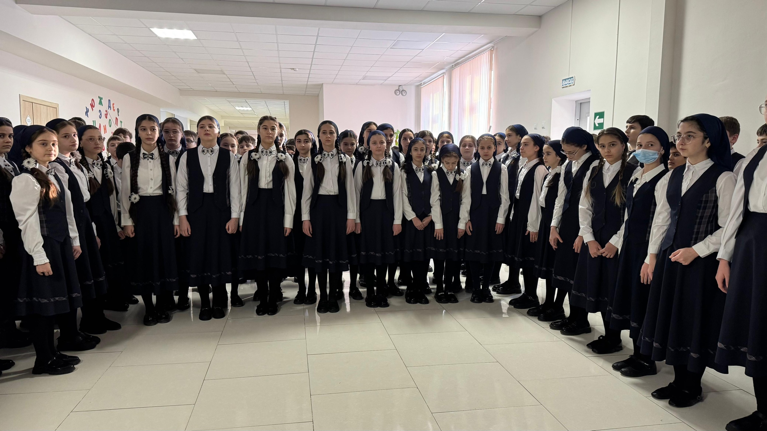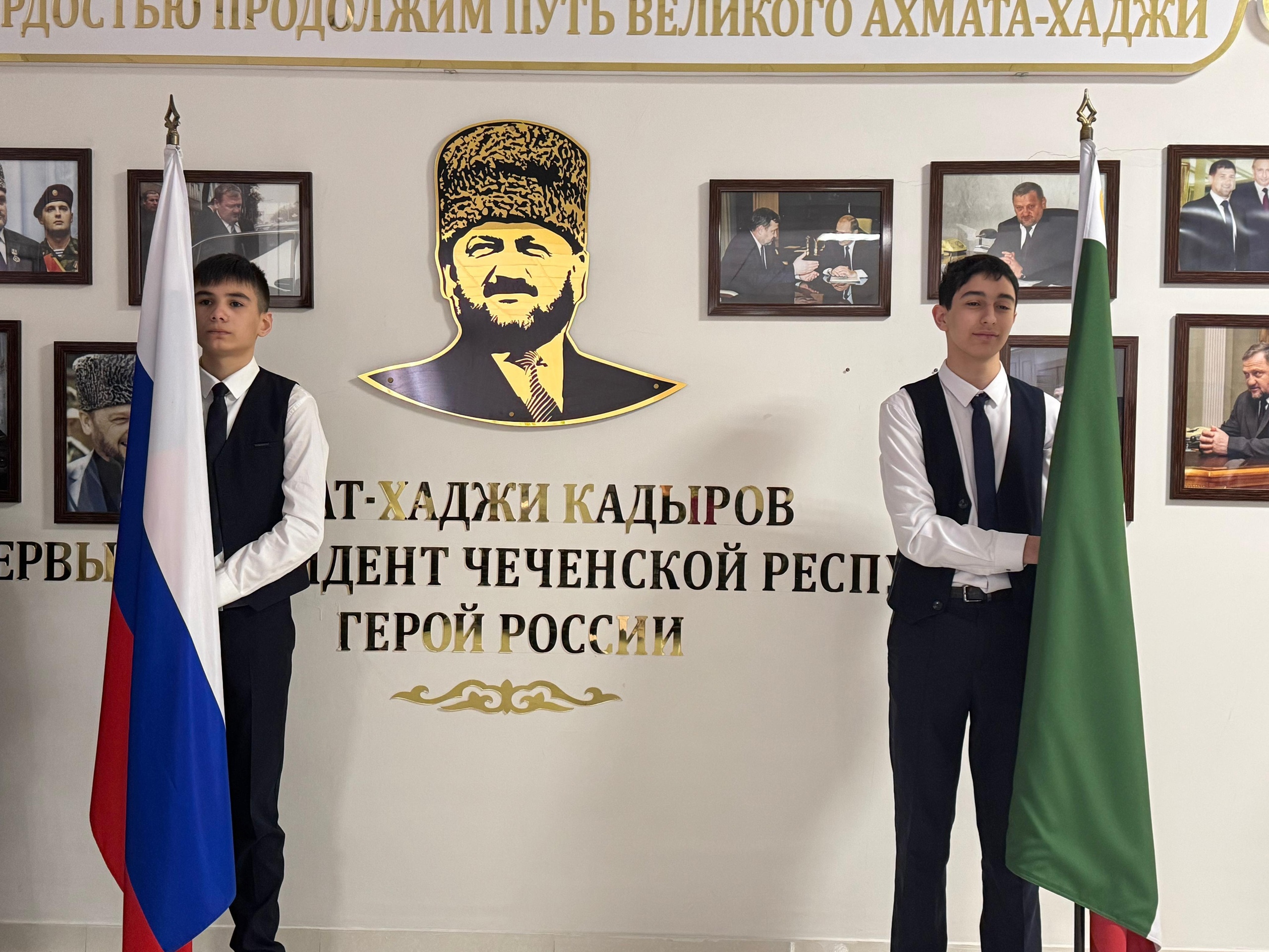 Еженедельная линейка, посвященной церемонии поднятия Государственного флага Российской Федерации и Чеченской Республики
