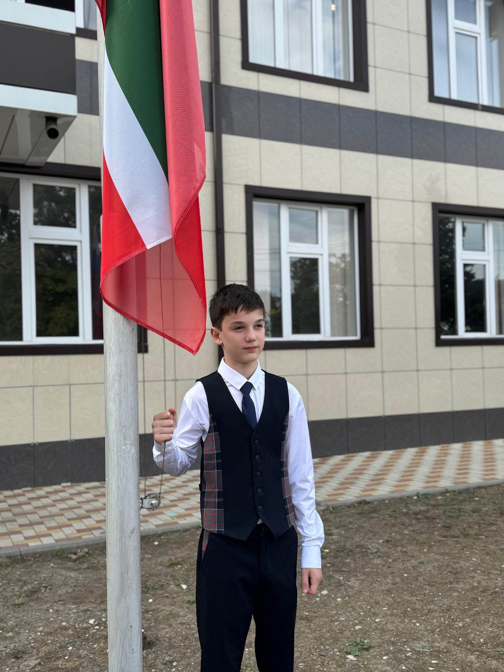 Еженедельная линейка, посвященной церемонии поднятия Государственного флага Российской Федерации и Чеченской Республики