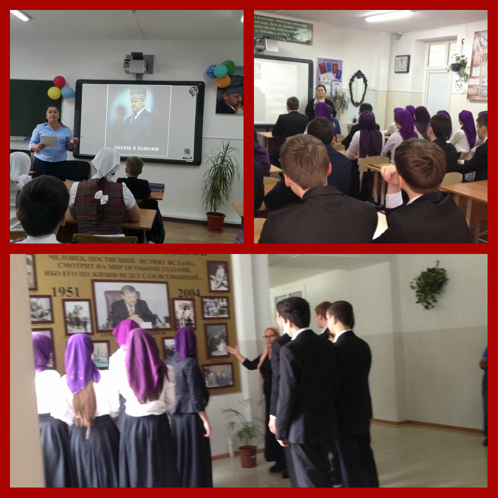 12 сентября в МБОУ "Гимназия №1 им.А.Кадырова" во всех классах были проведены классные часы на тему : "Роль Первого Президента ЧР Ахмат-Хаджи Абдулхамидовича Кадырова в истории России"